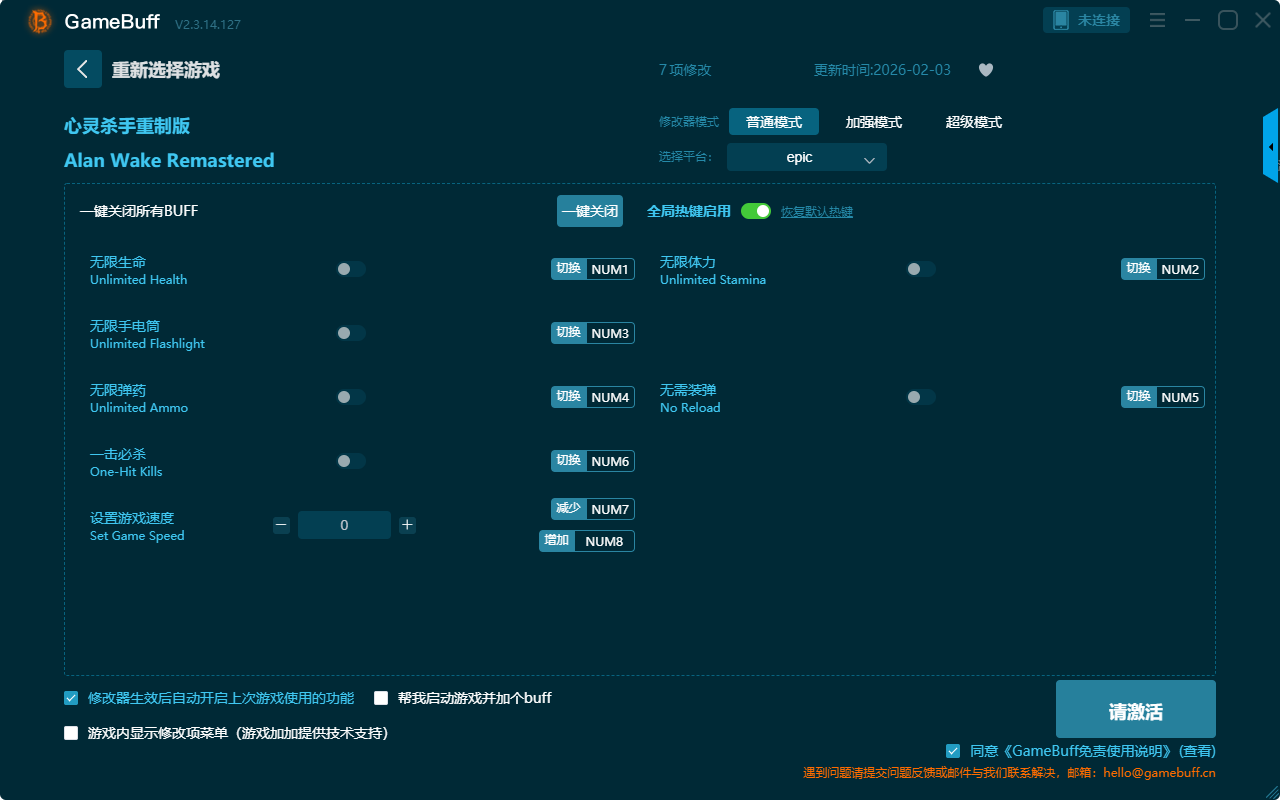 心灵杀手七项修改器是一款操作极其简单的游戏辅助修改器工具,功能强大实用,可一键设置拥有无限生命、无限手电筒、无限弹药、一击必杀、设置游戏速度、无限体力、无需装弹等七项功能内容,沉浸式享受游戏带来的乐趣,感兴趣的玩家千万不要错过哦!