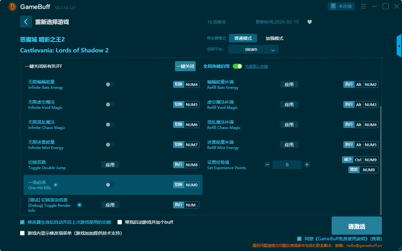 恶魔城:暗影之王2十六项修改器是一款操作极其简单方便的游戏辅助修改器工具,根据本身在游戏中遇到的困难一键设置拥有不受打击、无限生命、匕首能量补满、无限蝙蝠能量、无限匕首能量、无限混乱能量、设置经验值、切换双跳、一击必杀等十六项功能内容,感兴趣的玩家不要错过哦!