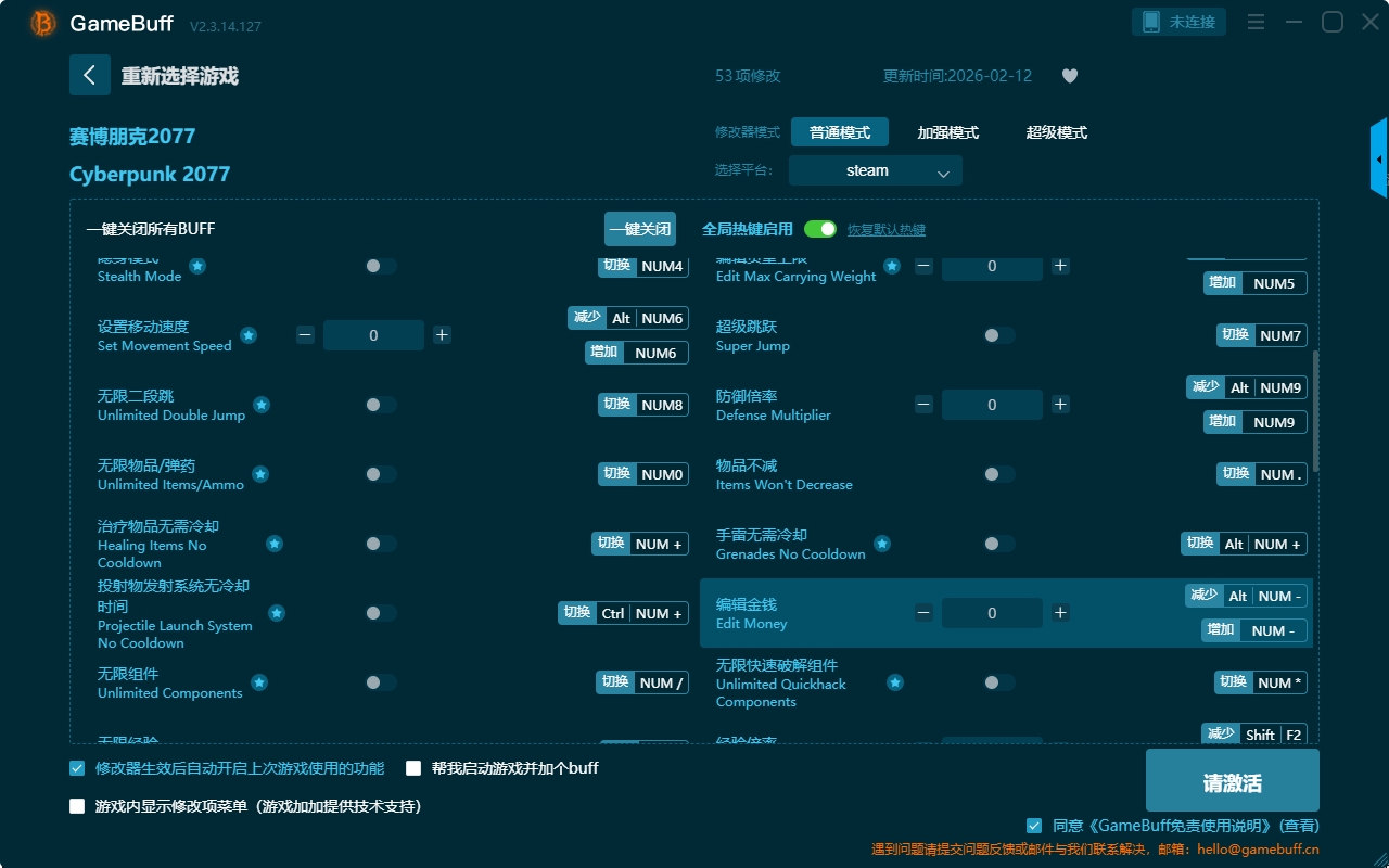 赛博朋克2077五十三项修改器是一款功能强大实用的游戏辅助修改器工具,操作极其简单易上手,可一键设置拥有无限生命、补充生命值、无限体力、回复魔法、超级跳跃、隐身模式、设置移动速度、耐力恢复速率、生命恢复速度、无限RAM、一击必杀、无后坐力、伤害倍率、设置飞行高度、激活飞行模式等五十三项功能内容,感兴趣的玩家不要错过哦!