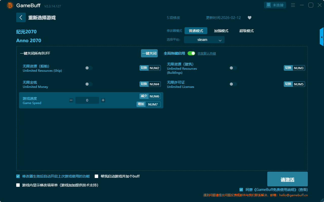 纪元2070五项修改器是一款功能强大实用的游戏辅助修改器工具,操作极其简单可根据本身的需求自由选择设置拥有无限资源(船舶)、无限金钱、无限资源(建筑)、游戏速度、无限许可证等五项功能内容,感兴趣的玩家快来当游网下载体验一下吧!