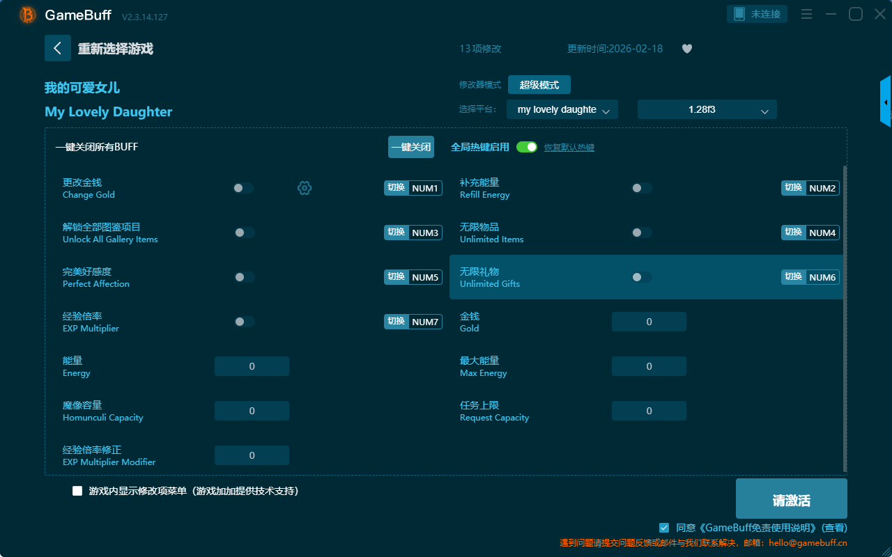 我的可爱女儿十三项修改器是一款操作极其简单的游戏辅助修改器工具,功能强大,可根据本身在游戏中遇到的困难一键设置拥有更改金钱、解锁全部图鉴项目、完美好感度、经验倍率、能量、魔像容量、经验倍率修正、补充能量等十三项功能内容,感兴趣的玩家不要错过哦!