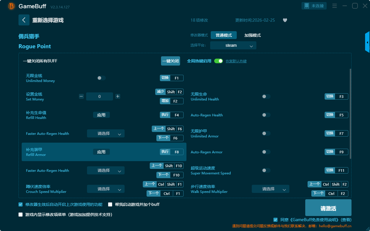 佣兵猎手十八项修改器是一款操作简单的游戏辅助修改器工具,根据本身在游戏中遇到的困难一键设置拥有无限金钱、设置金钱、无限生命、无限护甲、超级运动速度、步行速度倍率、补充装甲、蹲伏速度倍率、降低后坐力、冲刺速度倍率、无后坐力、游戏速度等十八项功能内容,感兴趣的朋友不要错过哦!