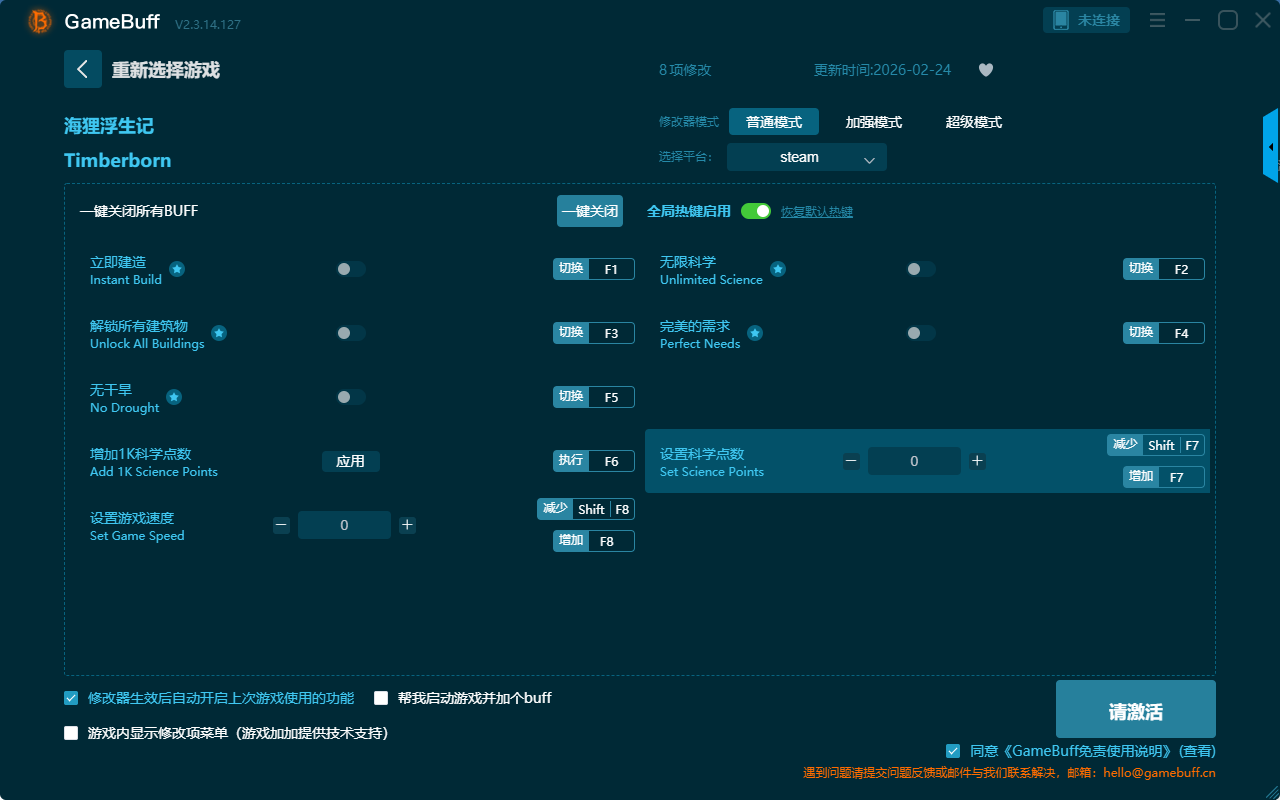 海狸浮生记八项修改器是一款功能强大实用的游戏辅助修改器工具,操作十分简单易上手根据本身在游戏中遇到的各种困难,一键设置拥有立即建造、解锁所有建筑物、无干旱、增加1K科学点数、设置游戏速、无限科学、完美的需求、设置科学点数八项功能内容,轻松享受游戏带来的乐趣,感兴趣的朋友不要错过哦!