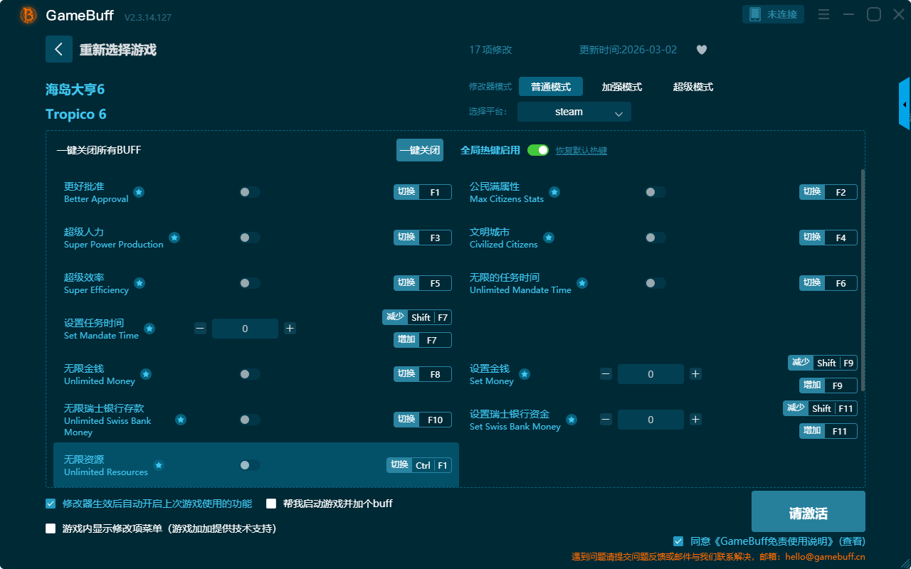 海岛大亨6十七项修改器是一款可以帮助玩家轻松享受游戏带来乐趣,解决各种困难与挑战的游戏辅助修改器工具,功能强大实用,操作也很简单易上手,可一键设置拥有更好批准、超级人力、超级效率、设置任务时间、无限金钱、无限瑞士银行存款、无限资源、公民满属性、文明城市等功能内容,感兴趣的朋友快来下载体验吧!