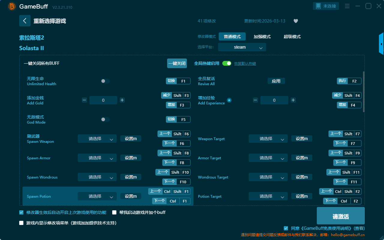 索拉斯塔2四十一项修改器是一款操作极其简单的游戏辅助修改器工具,功能强大实用,根据本身的需求自由选择设置拥有无限生命、全员复活、增加经验、无敌模式、刷武器、添加金钱、生成弹药、无限暴击、游戏速度、杀死所有敌人、开启超级速度等四十一项功能内容,大家千万不要错过哦!