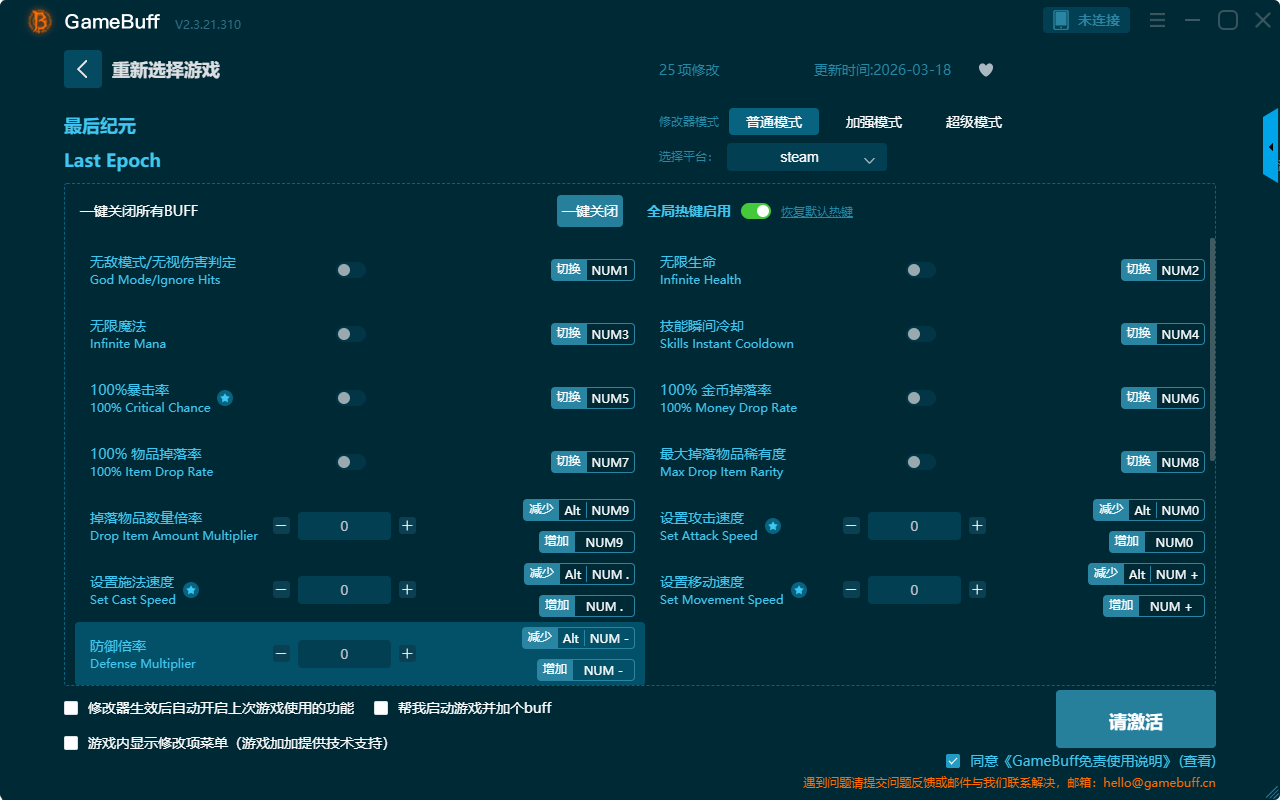 最后纪元二十五项修改器是一款功能强大实用的游戏辅助修改器工具,操作极其简单易上手,根据本身的需求自由选择设置拥有无敌模式、无限魔法、设置施法速度、防御倍率、一击必杀、超级伤害、无限经验、编辑生命恢复、编辑技能等级和技能点数等二十五项功能内容,大家千万不要错过哦!