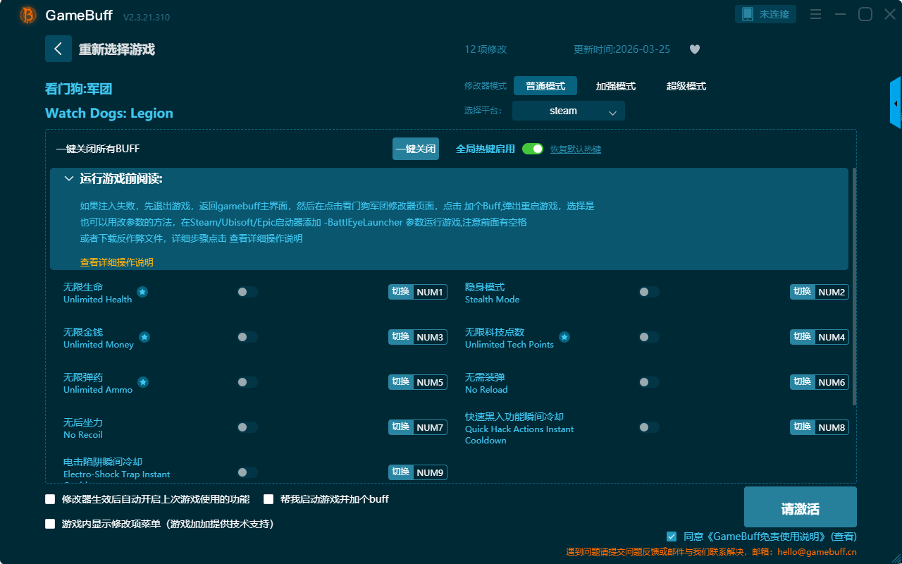 看门狗:军团十二项修改器是一款功能强大实用的游戏辅助修改器工具,操作极其简单,可自由设置拥有无限生命、无限金钱、隐身模式、无限科技点数、无需装弹、无限弹药、无后坐力、点击陷阱瞬间冷却、一击必杀、子弹时间、超级移动速度等十二项功能内容,感兴趣的朋友不要错过哦!