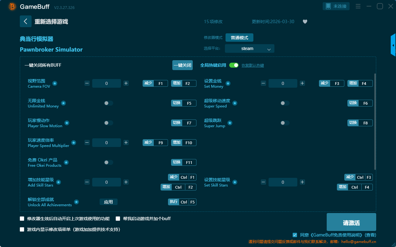 典当行模拟器十五项修改器是一款功能强大的游戏辅助修改器工具,根据本身遇到的困难自由选择拥有视野范围、无限金钱、玩家慢动作、玩家速度倍率、免费Okei产品、增加技能星级、解锁全部成就、设置金钱、超级移动速度、超级跳跃、设置技能星级、顾客耐心高、游戏速度、高清截图、子弹时间等十五项功能内容,感兴趣的玩家不要错过哦!
