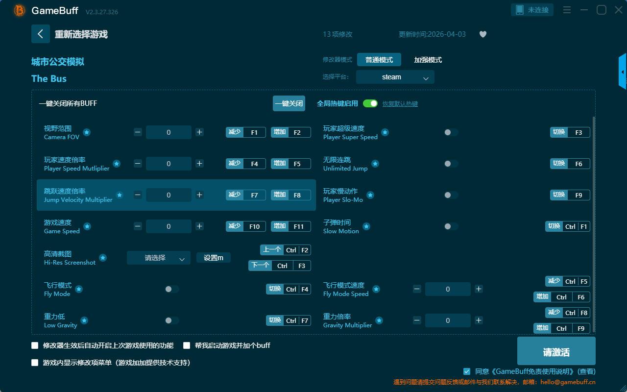 城市公交模拟十三项修改器是一款操作极其简单的游戏辅助修改器工具,功能强大,根据本身在游戏中遇到的各种困难自由选择设置拥有玩家超级速度、无限连跳、玩家慢动作\、子弹时间、飞行模式速度、重力倍率、视野范围、玩家速度倍率、跳跃速度倍率、游戏速度、高清截图、飞行模式等十三项功能,大家不要错过!