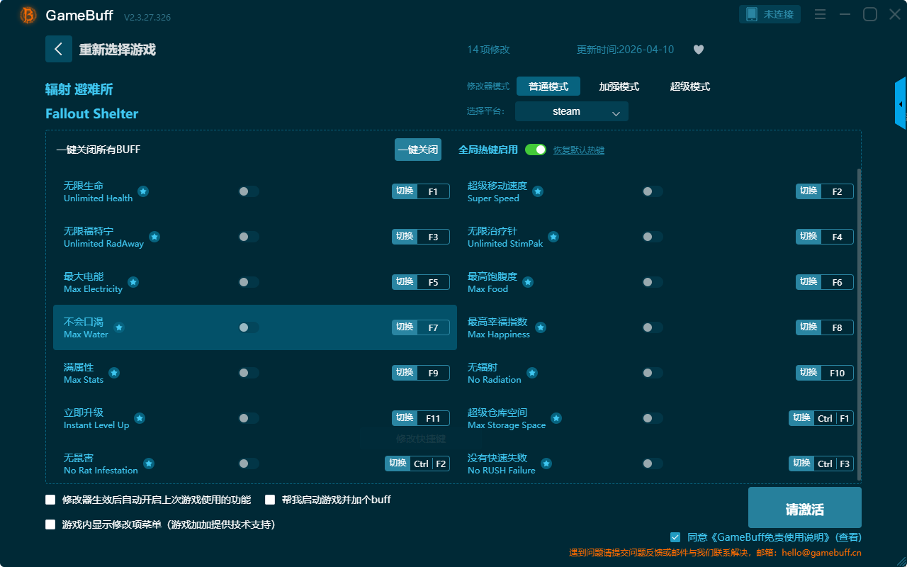 辐射避难所十四项修改器是一款操作极其简单易上手的游戏辅助修改器工具,根据本身在游戏中遇到的困难,自由选择拥有无限生命、超级移动速度、无限治疗针、最高饱腹度、最高幸福指数、无辐射、没有快速失败、立即升级、最大电能、不会口渴、满属性等十四项功能内容,感兴趣的玩家不要错过哦!