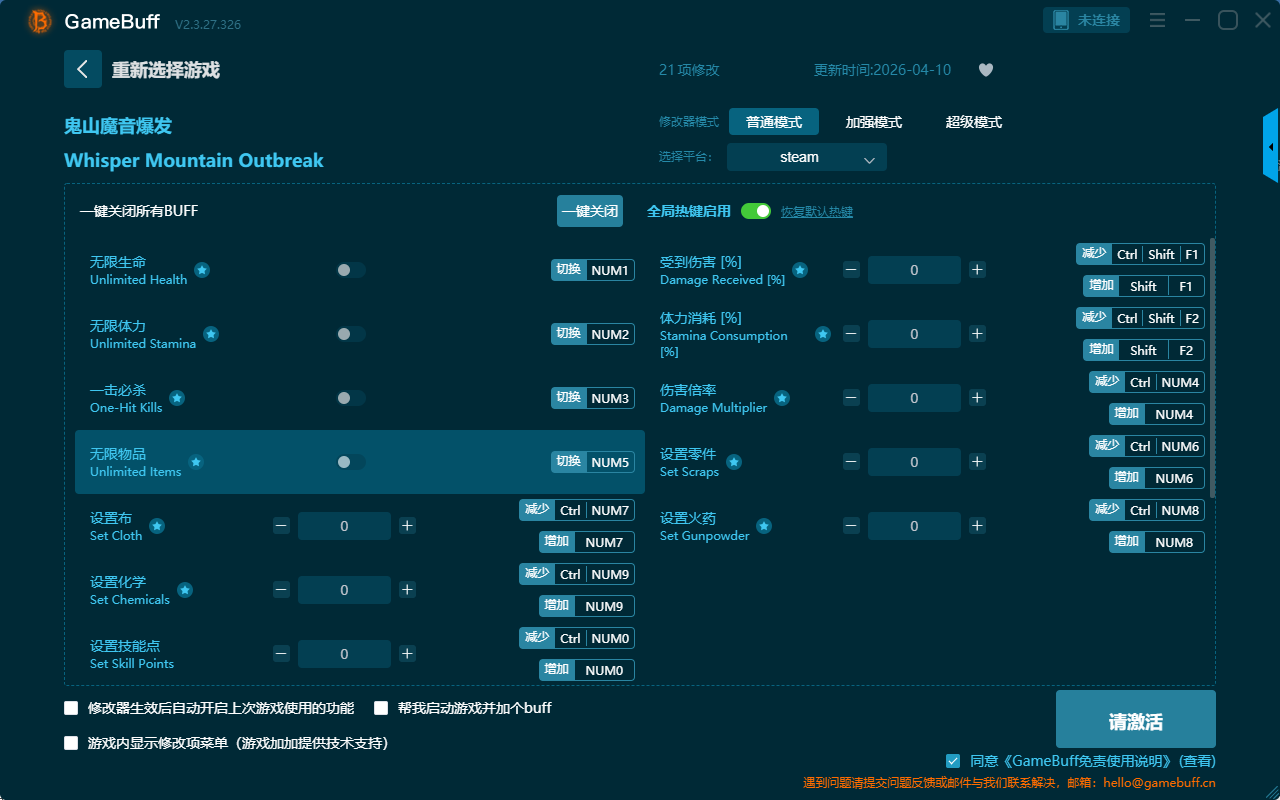 鬼山魔音爆发二十一项修改器是一款功能强大实用的游戏辅助修改器工具,操作简单易上手,根据本身在游戏中遇到的困难自由选择拥有无限生命、无限体力、一击必杀、无限物品、设置布、设置化学、设置技能点、受到伤害[%]、体力消耗[%]、伤害倍率、设置零件、设置火药、快速射击、无需装弹等二十一项功能内容,大家千万不要错过哦!