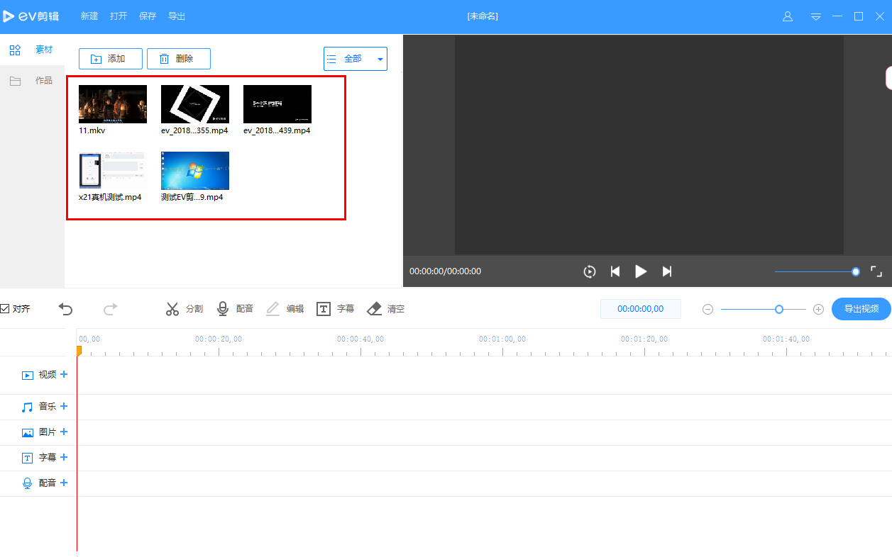 2、批量添加素材:在素材区可一次性选中多个素材文件进行导入,提高素材添加效率,便于批量处理。