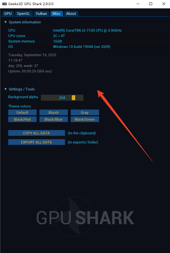 4、最后一个标签页为 Misc,使用者可通过它查看 CPU、操作系统等设备与系统相关信息。