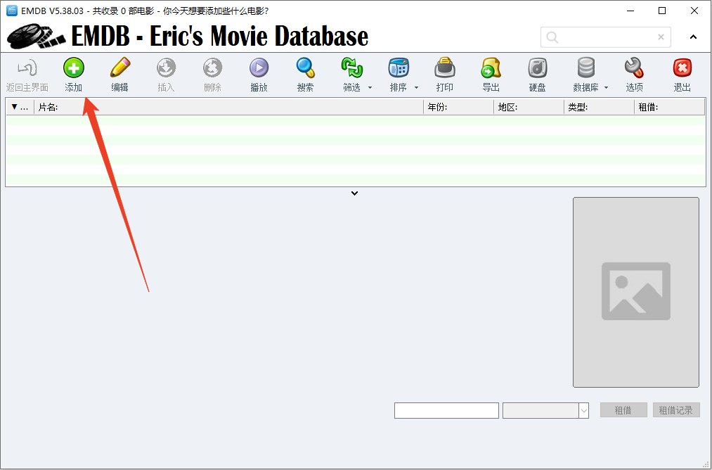 1、打开软件后,进入主界面,点击 “添加” 按钮,即可开始搜索电影文件。