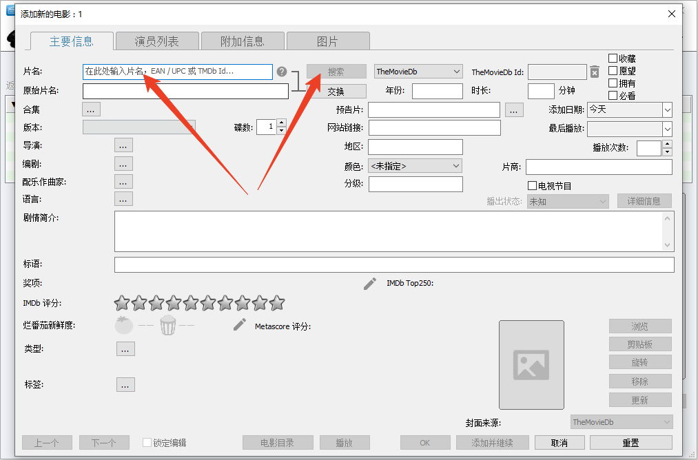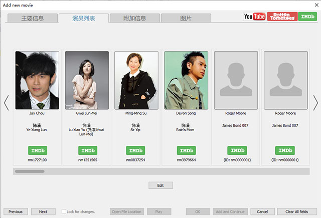 1、可添加电影的剧情梗概与演员信息,能选择 IMDB 评分,也可手动添加自己对影片的评级。