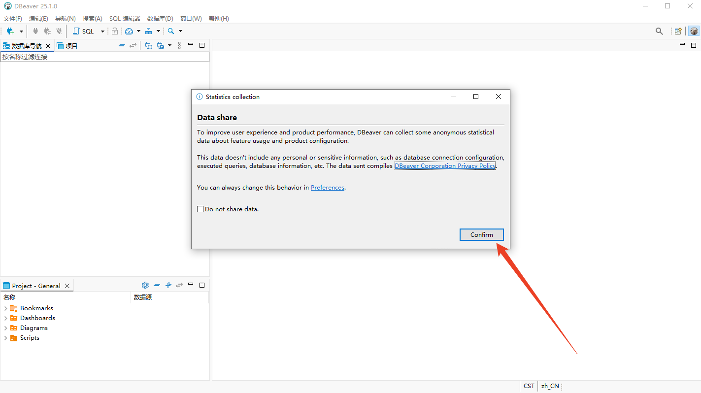 2、加载完成后会弹出数据共享协议窗口,若不想共享数据,需勾选对应取消选项,随后点击 “Confirm” 按钮确认。