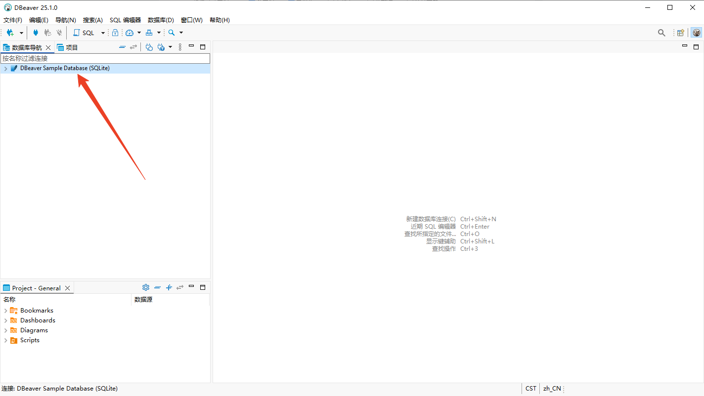 4、选择启用示例后,主界面左上角空白区域会新增案例项目,点击该案例即可尝试各类数据库操作。