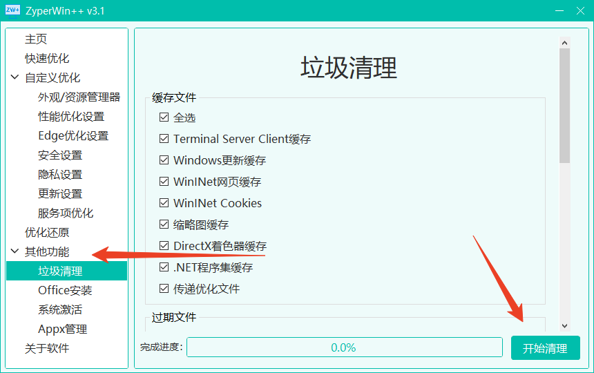 3、实用工具集成:整合垃圾清理、系统激活、Office 安装功能,一站式解决系统优化与软件部署需求,无需切换多工具。