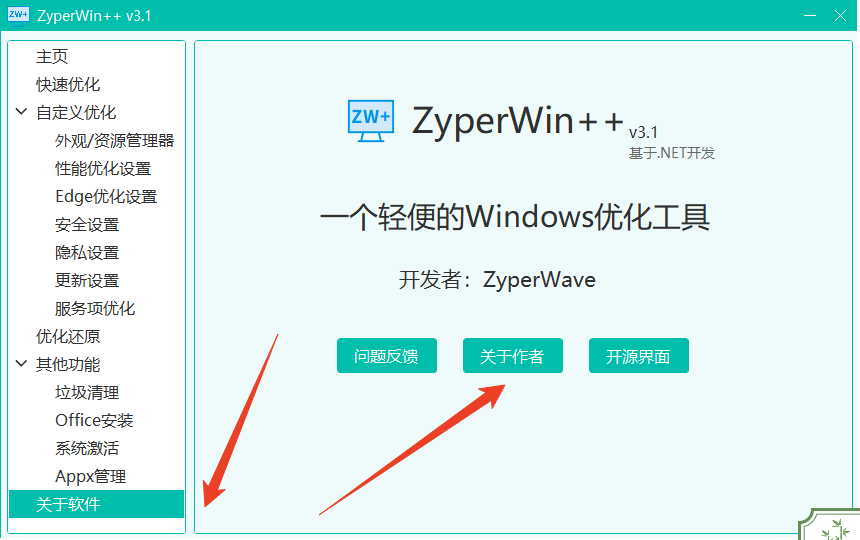 1、软件无需安装,下载后直接打开即可使用,主界面包含快速优化、自定义优化、优化还原、其他功能四个核心模块。