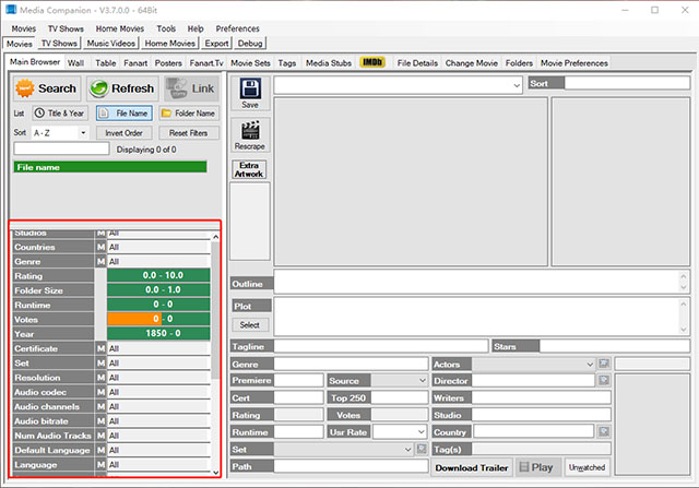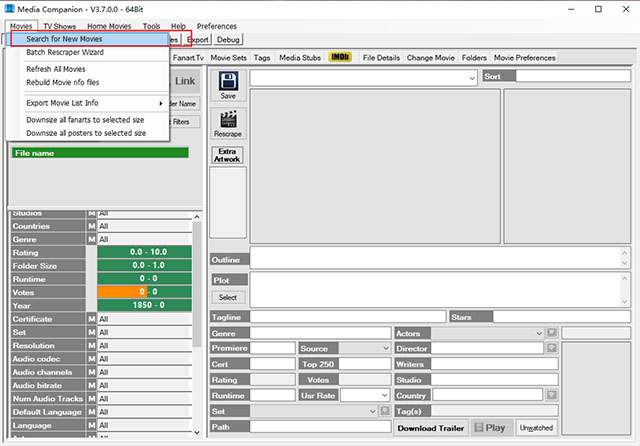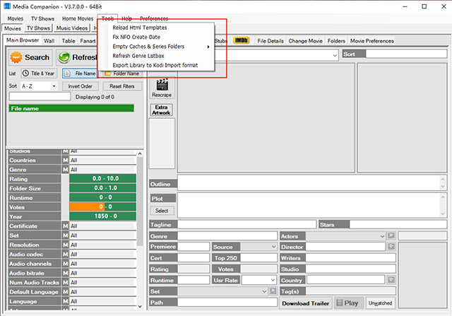 支持查看、编辑所有获取的媒体数据,可将媒体标签保存至 NFO 文件,同时支持 “ExtraThumbs” 和 “ExtraFanart” 功能(需电影单独存放于文件夹)。