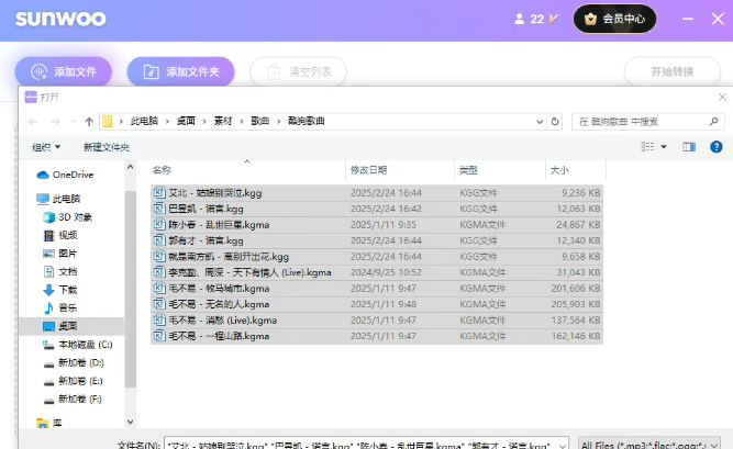 2、在文件列表中挑选需要处理的音频文件,确认后完成添加。