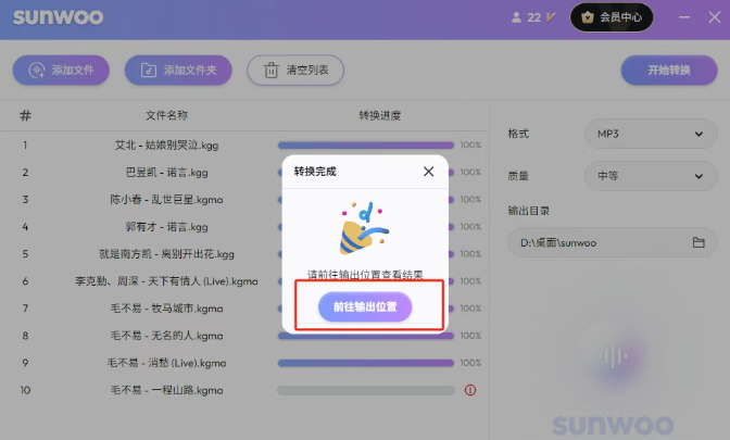 6、转换结束后,点击 “前往输出位置”,就能找到转换好的音乐文件。