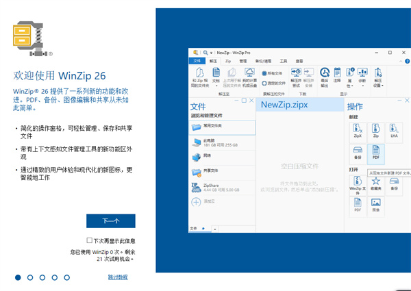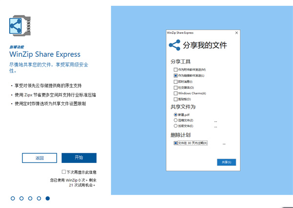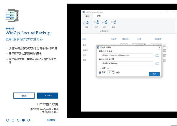 能够邮寄 Zip 文件与 WinZip 作业完成日志。
