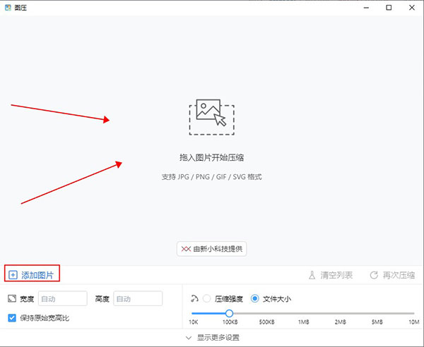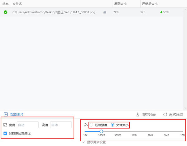 5、在软件下方的设置区域,可自定义调整图片压缩后的长宽尺寸、压缩强度以及目标文件大小,适配不同使用需求。