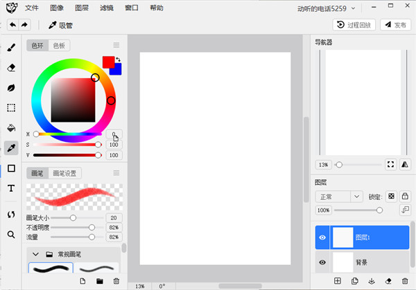 7、画板创建完成后进入绘画界面,该界面布局与 PS 相似,熟悉 PS 的用户可快速上手。