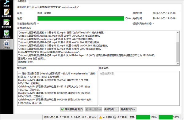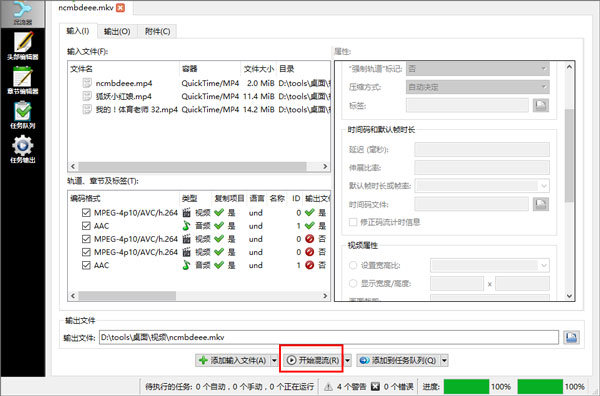 4、点击 “开始混流” 按钮,启动文件混流流程。