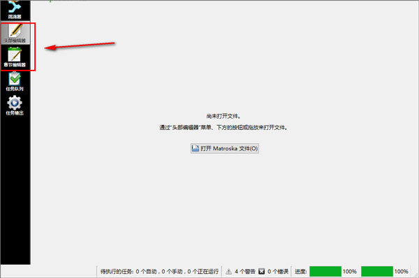 1、打开 MKVToolnix 软件,等待加载完成后进入主界面。