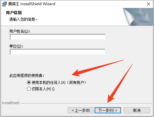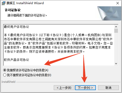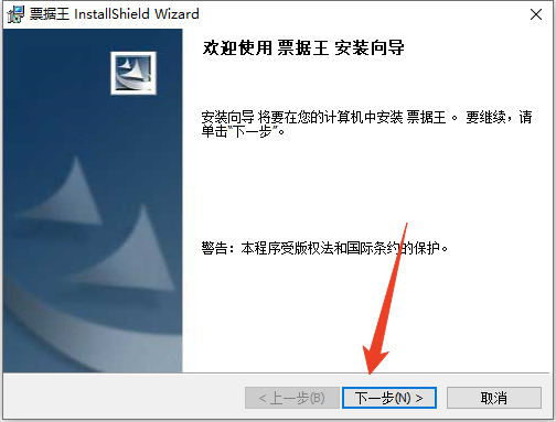 1、解压票据王安装包,找到并运行 exe 格式的安装文件,弹出安装界面后点击 “下一步”;