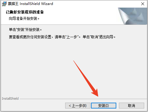 5、完成前期设置后,点击 “安装” 按钮,启动票据王的安装程序;