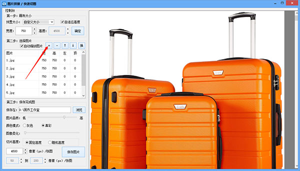 5、长图处理:在左上角【工具】-【长图拼接切图】中,既能将多图拼接成长图,也能将长图重新切成短图。