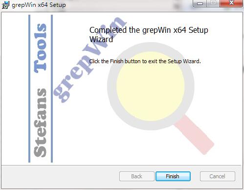 4、当安装进度条完成,提示安装成功后,单击界面中的 “Finish” 按钮,关闭安装向导,至此 GrepWin 安装全部完成。