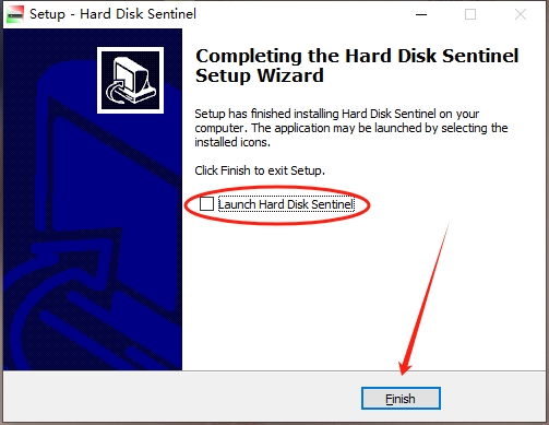 5、安装结束后,取消 “Launch Hard Disk Sentinel” 勾选,点击 “Finish”。