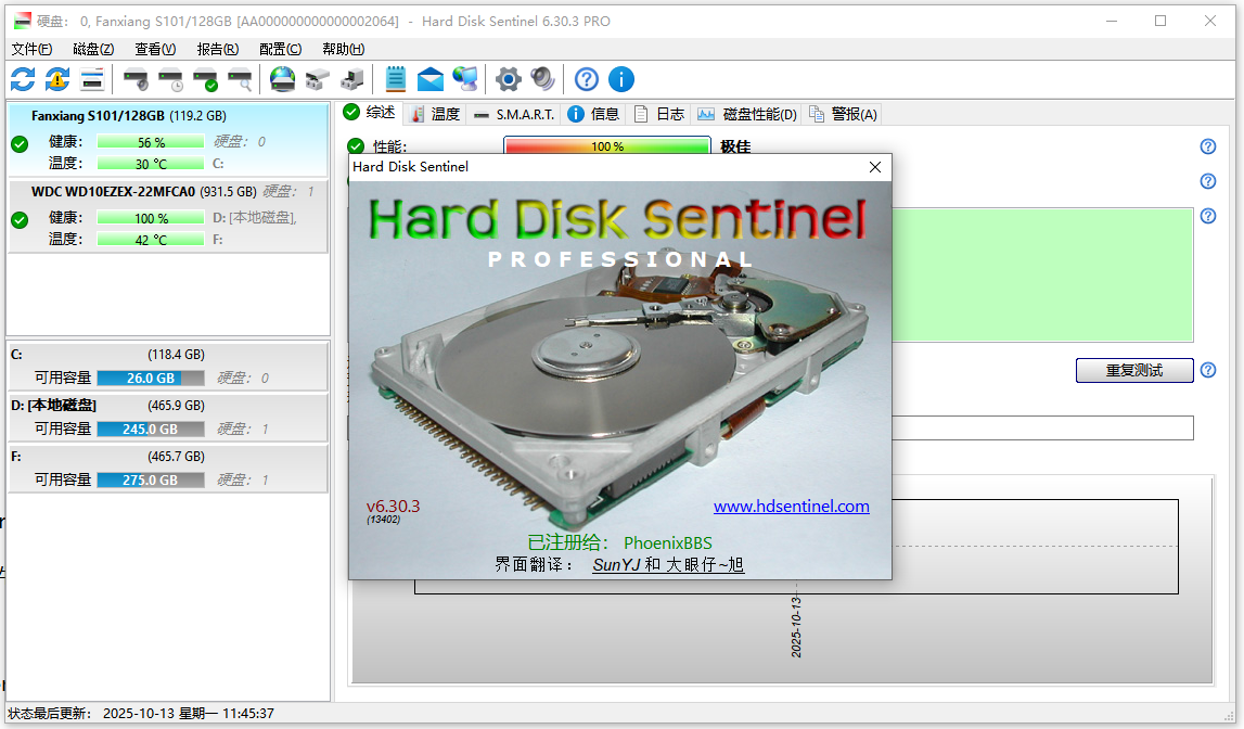 10、全程状态记录:追踪 S.M.A.R.T. 参数衰减,出现新坏扇区等异常时及时警报。