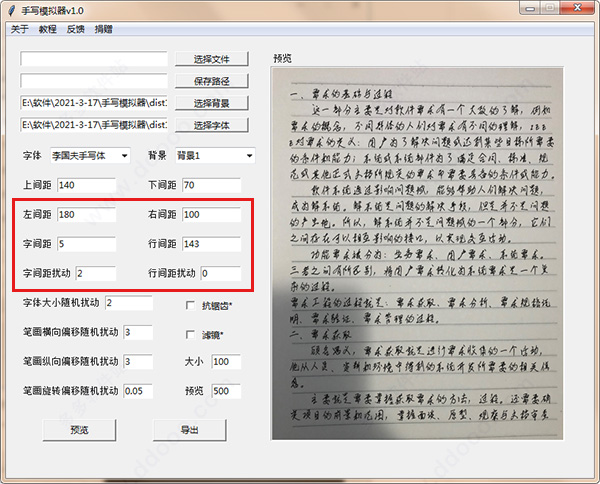 8、笔画纵向偏移支持随机扰动,让手写模拟更具真实感;