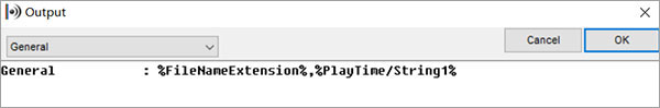 11、完成设置后,即可看到自定义的输出信息,第一行左侧为文件名,右侧为时长。