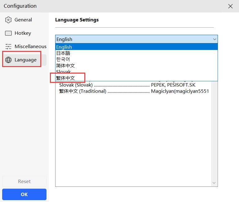 6、在语言选项中选择Language/繁体中文