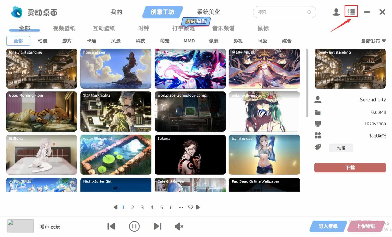2、支持导入本地视频或GIF图自定义,部分壁纸含互动元素,点击、拖拽可触发动画。