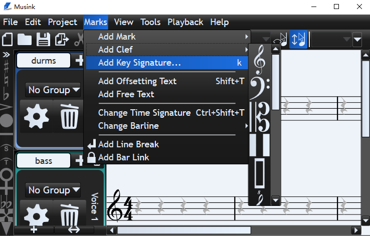 3、点击“Marks”菜单下“Add Clef”栏第一个音符图标,将光标悬停编辑区并点击,放置音符。