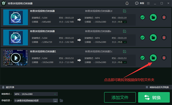 3、选定目标转换格式,点击“转换”按钮,静待批量转换任务完成。