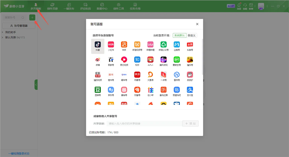 1、添加自媒体账号,完成基础账号绑定操作;