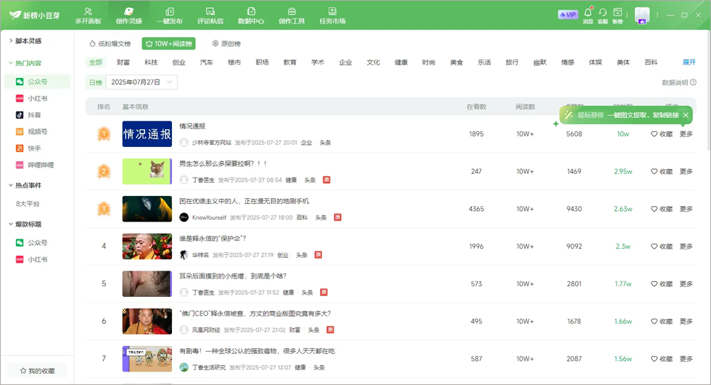 5、自媒体编辑器:专为多平台定制,具备AI灵感激发及海量爆款素材库;