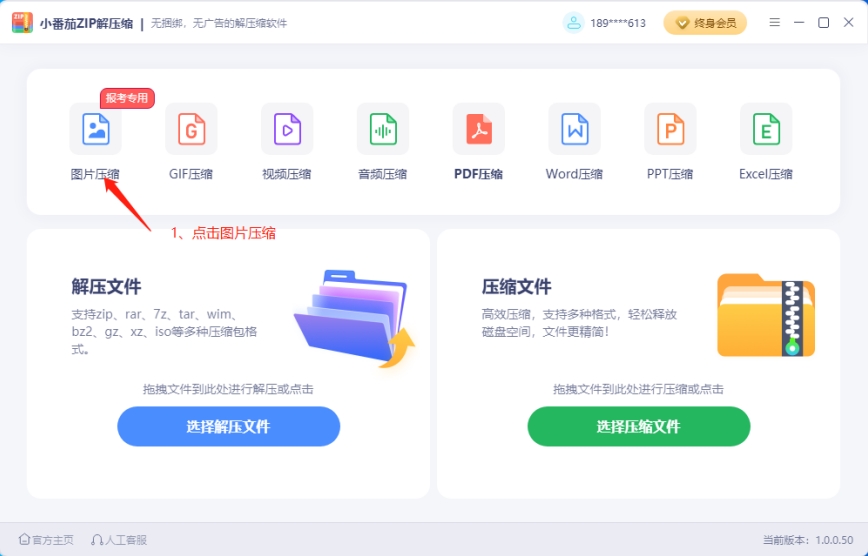 1、打开小番茄ZIP解压缩,在主界面选择“图片压缩”功能;