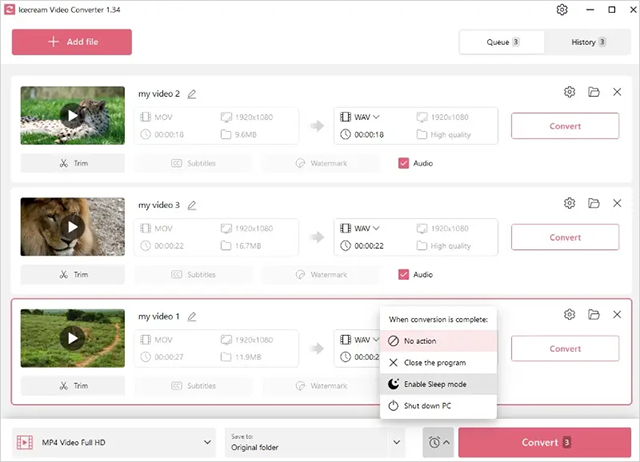 2、视频转MP3:支持将视频转换为音频,可提取声带或背景音频为MP3格式;