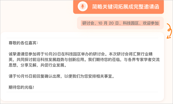 1、出口成章,将碎片化口语转化为专业规范的书面表达;