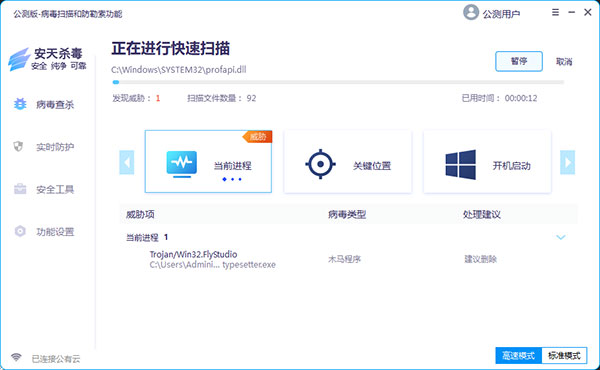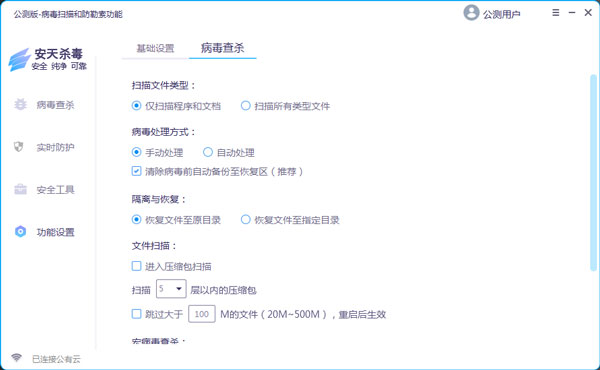 2、强劲核心防护支撑:公测版本搭载安天AVL SDK反病毒引擎与流行病毒库,联网状态下可启用更全面的云查杀能力;