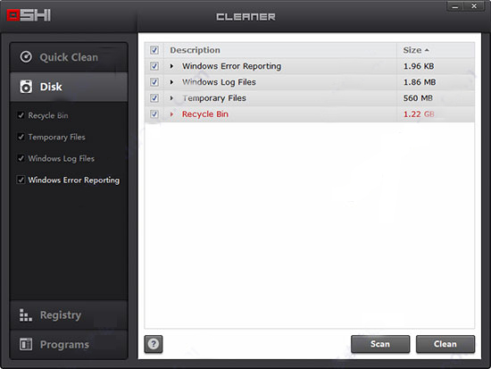 2、全面垃圾检测:自动识别内存转储、Windows日志文件、错误报告,同时检测回收站、临时文件,扫描完成后可一键删除;